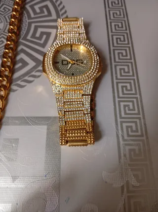 Reloj y collar dorado