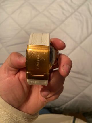 Elegante reloj Time Force de edición limitada con un diseño sofisticado. Cristiano ronaldo Incluye la caja y certificado - Caja y detalles en tono dorado. - Correa de silicona blanca. - Esfera con múltiples subesferas. Es para arreglar,hace mucho tiempo que no se utiliza y no funciona bien