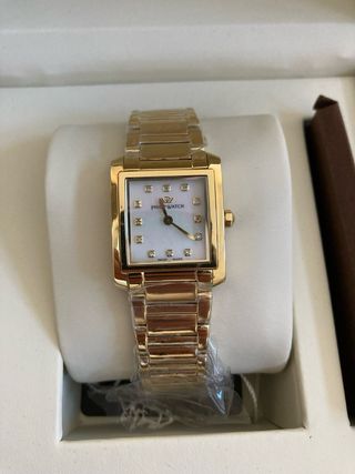 Reloj de la marca Philip Watch nuevo sin estrenar, con etiquetas y en su caja original. Tamaño De La Caja: 24 x 30 mm Pulsera bañada en oro. 12 Diamantes. Funciona perfectamente. # chica mujer señora dorado regalo barato #