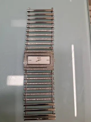 Elegante reloj de pulsera para mujer de la marca Dolce & Gabbana. - Diseño con incrustaciones de cristales. - Correa de eslabones metálicos.