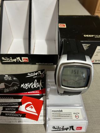 Reloj de pulsera Quiksilver con diseño moderno. tabla de mareas de todo el mundo. - Correa de caucho negra. - Caja plateada. - Pantalla digital.