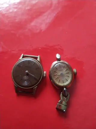 Reloj de cuerda de la marca songines.no funciona,falta el cristal también,para piesas..es de los anos 50 es muy raro - Esfera marrón. - Detalles en dorado.El otro es timex de cuerda..no funciona ninguno..