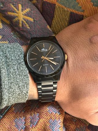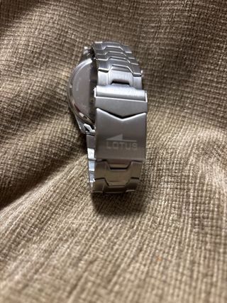 Elegante reloj de pulsera de la marca Lotus con una esfera azul y detalles plateados. - Diseño moderno y versátil. - Correa de metal. - Resistente al agua 50 metros.