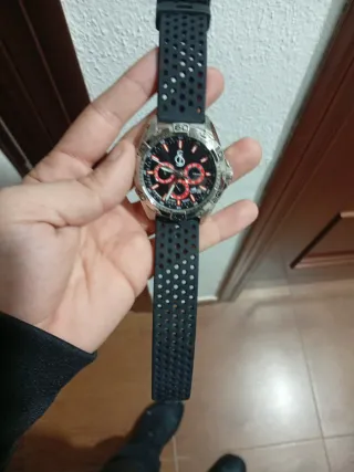 Reloj con el escudo del Sevilla Fútbol Club. Presenta un diseño deportivo y llamativo. - Esfera roja con detalles blancos. - Correa negra de material flexible. - Bisel con escala de unidades por hora. el reloj tiene muy poco uso se ha usado dos veces