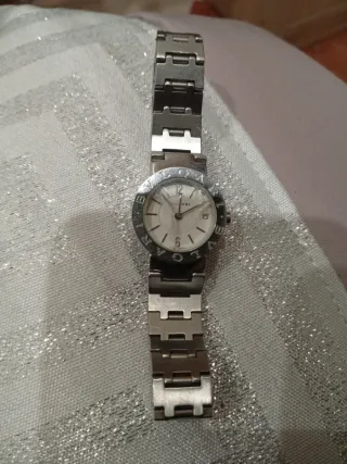 Reloj de pulsera Bvlgari para mujer con detalles en plata y blanco. El cristal de la esfera está roto. - Diseño elegante. - Correa de metal.
