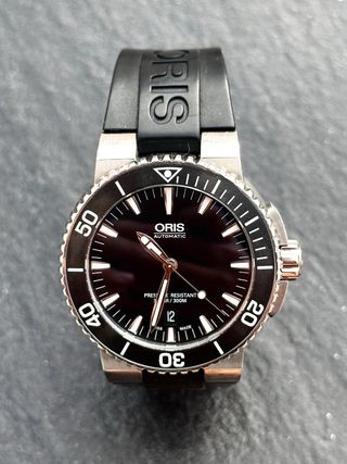 Reloj Oris Aquis con movimiento automático y correa de caucho. - Bisel giratorio unidireccional. - Ventana de fecha a las 6 en punto. - Resistencia al agua de 300 metros. Somos profesionales todos nuestros articulos tienen 6 meses de garantia en su funcionamieno.