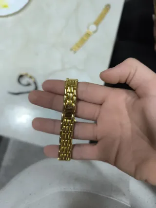 Pulsera de recambio en acero inoxidable para reloj con un diseño elegante que combina tonos dorados y plateados. - Ancho de 17mm. - Cierre mariposa de seguridad. - Eslabones intercambiables.