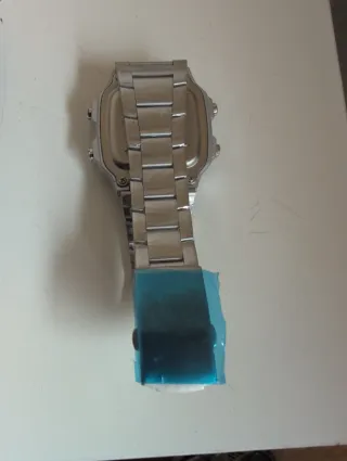Resistente al agua, microluz, alarma diaria Cronómetro digital de 1/100 segundos, señal horaria Calendario automático, precisión: +/-30 segundos al mes Batería CR2016, aprox. Duración de la batería: 7 años. Lo vendo a 15 porque hay que arreglar la parte del brazalete