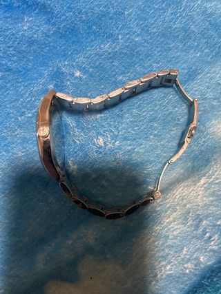 Reloj de pulsera con un diseño moderno y elegante. - Esfera de color azul. - Correa de eslabones plateados. - Resistente al agua 50 metros. - Movimiento de cuarzo.
