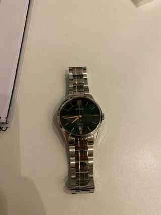 Saco a la venta este relor de hombre elegante totalmente nuevo.No se ha usado nunca ,esta impecable sin ninguna sola rallada o marca . Tamaño normal queda muy bien puesto a la muñeca Ideal si buscas algun reloj de calidad y nuevo a estrenar por un buen precio .
