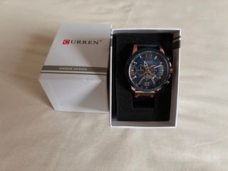Reloj CURREN nuevo en caja Sin estrenar. Diseño elegante con esfera negra, detalles en oro rosa y correa negra. Incluye caja original con protección interior. Ideal como regalo o para uso diario. Precio: 20 € Entrega en mano en Dénia o envío a otras zonas.