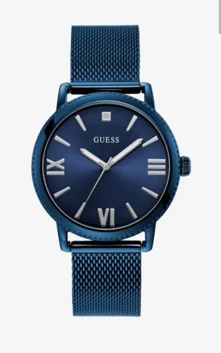 Elegante reloj de la marca Guess con un diseño moderno y sofisticado. NUEVO A ESTRENAR Y ORIGINAL 100%. -Unisex - Esfera azul con detalles plateados. - Correa de malla metálica ajustable. - Cierre de seguridad.