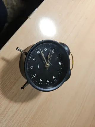 Reloj despertador analógico negro y dorado