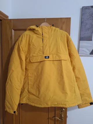Abrigo largo con aislamiento térmico hasta -20°C, cuello alto con capucha y detalle de pelo desmontables por separado, bolsillos frontales con cierre a presión, mangas largas con puños elásticos, cremallera en los laterales en la parte inferior Tejido exterior 100% poliéster, relleno 100% algodón. Lavar a 30 grados, no secar en secadora. Talla XL. Marca: Assuili. Precio de compra: 72€.
