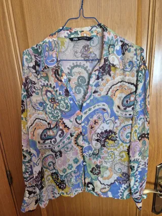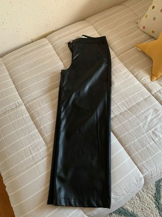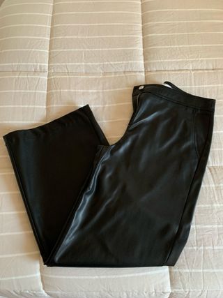Pantalón vaquero de Zara con corte flare y tiro alto. - Diseño moderno y favorecedor. - Acabado desgastado en los bajos. - Tejido denim de calidad. Buen estado, excepto una raya en la pernera izquierda (ver última foto)