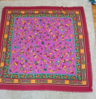 Pañuelo vintage. Color granate con flores y violeta en el interior. Nuevo. Grande 108x 115
