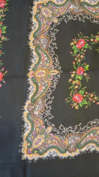 Fular, pañuelo vintage color negro con flores. Nuevo. 78cm.