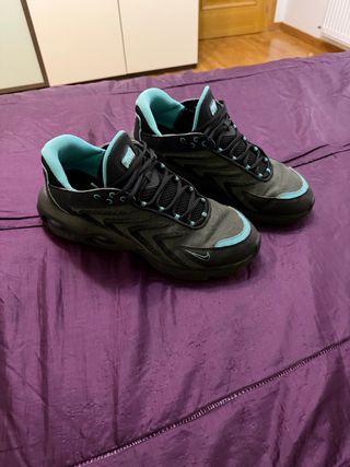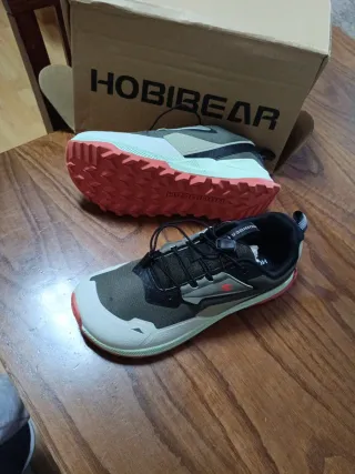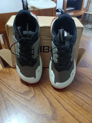Zapatillas deportivas de la marca Hobibear en tonos verdes y con detalles en rojo. Perfectas para actividades al aire libre. - Diseño moderno. - Suela de goma con buen agarre. - Cierre de cordones. - Detalle de logo en la lengüeta. Tiene un pequeño desperfecto una pequeña mancha , no probé a quitarla vino así de tienda, se me pasó el plazo de devolución