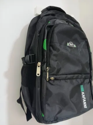Mochila con un diseño moderno y práctico. - Compartimento principal espacioso. - Bolsillo frontal con cremallera. - Correas ajustables para mayor comodidad. - Detalles en color verde.