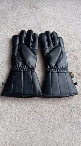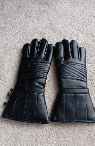 Guantes de esquí vintage en color negro. Interior muy agrigoso y calentito. Medidas en las fotos. En el guantes izquierda tiene unas marcas redondas, que se ven en las fotos. En el guantes derecho tiene un pequeño desgaste que se ve en las fotos. Están nuevos, pero tienen estas marcas de llevar tantos años guardados.