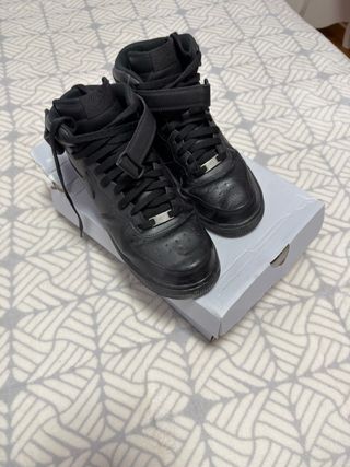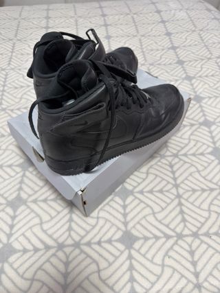 Zapatillas altas Nike Air Force 1 en color negro. - Cierre de velcro en el tobillo. - Cordones negros. - Detalle metálico en los cordones.