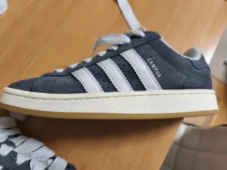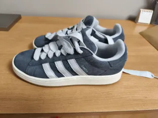 Zapatillas deportivas Adidas modelo Campus para hombre. Un clásico con un diseño urbano y moderno. - Exterior de ante. - Detalle de las tres bandas. - Suela de goma. Son originales, comprados en JD Sports. Un cordón está recosido, por eso se envían unos de repuesto. La talla pone 39 1/3. Una zapatilla tiene un pequeño roce. Precio de compra 80€ en oferta.