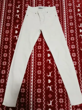 Pantalones de corte recto de la marca Bershka. - Color blanco. - Diseño de cinco bolsillos. - Cierre de cremallera y botón. Tienen una pequeña mancha en la parte de atrás. SÓLO HAGO ENVÍOS POR INPOST.