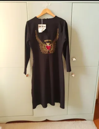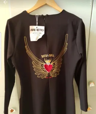 Vestido midi de la marca Aire Retro. - Diseño con estampado de alas y corazón. - Detalle de texto Rock & Roll bordado. - Manga larga.