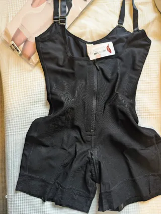 Prenda moldeadora de compresión alta. - Diseño de cuerpo completo. - Cierre frontal con cremallera. - Tirantes ajustables. - Encaje en los muslos.