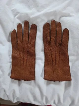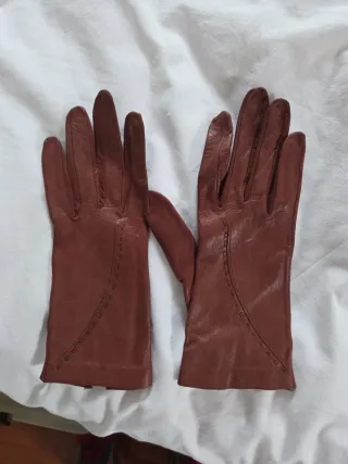 Elegantes guantes de cuero para mujer, ideales para complementar tu estilo. - Material: Cuero fino. - Diseño delicado con costuras. - Talla: 7. Usado en pocas ocasiones