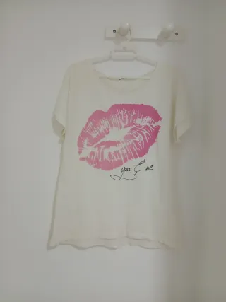 Camiseta blanca con un llamativo estampado de labios rosas y la frase you & me. - Diseño moderno y divertido. - Cuello redondo. - Manga corta. SÓLO HAGO ENVÍOS POR INPOST