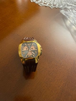 Reloj de pulsera dorado y marrón