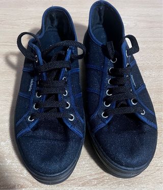 Preciosas zapatillas Victoria, con plataforma. Combinadas en azul marino y negro, con efecto brillante en la tela. Muy cómodas y versátiles. Muy buen estado.