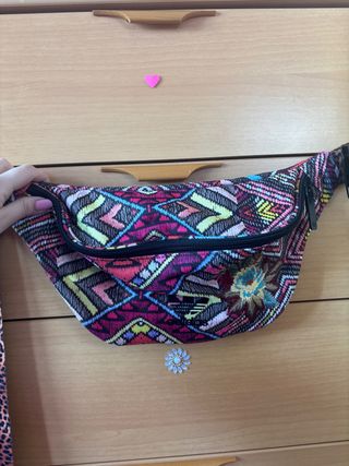 Riñonera con un diseño vibrante y llamativo. Perfecta para llevar tus esenciales. - Estampado geométrico - Detalle bordado floral - Cierre de cremallera