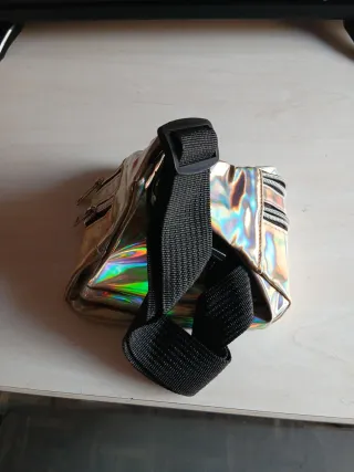 Riñonera con un diseño llamativo y moderno. Su acabado holográfico refleja múltiples colores. - Cierre con cremallera. - Correa ajustable.