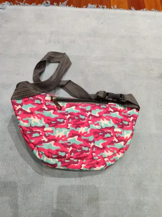 Riñonera con un llamativo diseño de camuflaje. - Estampado en tonos rosa y turquesa. - Parche circular con logo de SPORT en la parte frontal. - Cremalleras para acceso a los compartimentos.