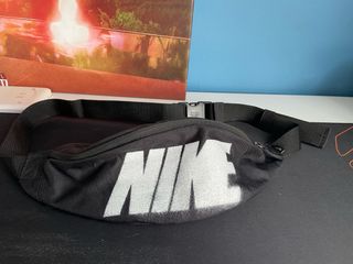 Riñonera deportiva Nike Air con un diseño moderno. - Compartimento principal con cierre de cremallera y sub bolsillo con cremallera. - Otro bolsillo pegado a ti para que no se pueda abrir. - Correa ajustable con hebilla. - Logo de Nike Air visible. Apenas se ha usado está impecable y obviamente es original.