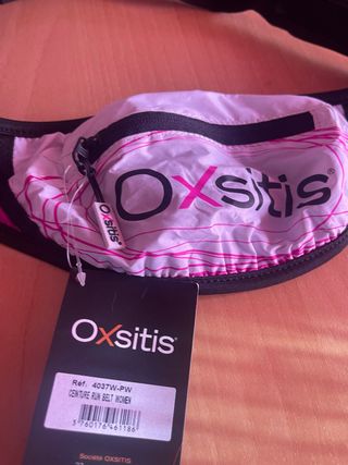 Riñonera deportiva Oxsitis,diseñada para correr. nueva sin estrenar - Estampado de líneas finas en color rosa. - Cremallera negra.