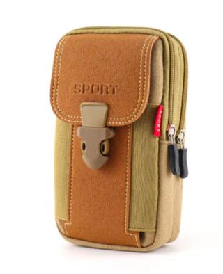 Riñonera deportiva en tonos beige y marrón. Está en muy buen estado y es perfecta para llevar tus objetos personales de forma segura y cómoda. - Bolsillo principal con cierre de cremallera. - Bolsillo frontal con cierre de hebilla. - Compartimento para móvil. - Correa ajustable para llevarla en la cintura.