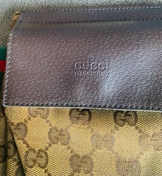 Riñonera con el icónico monograma de la marca. Su diseño la hace versátil y práctica para el día a día. - Correa ajustable con detalles de rayas verdes y rojas. - Cremalleras doradas. - Bolsillo frontal con cremallera.