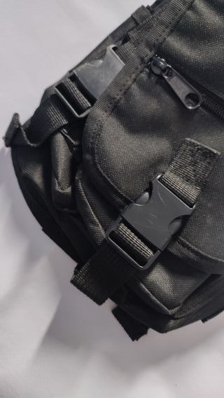 Estilo militar. Multi bolsillo. Color negro desgastado. 21x16cm