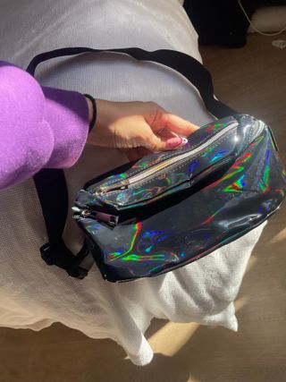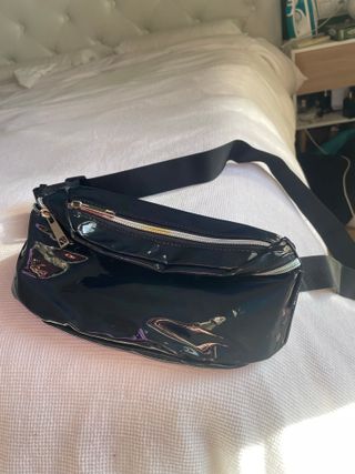 Riñonera negra con efecto iridiscente cuando le da la luz. Nueva sin estrenar. Tiene 3 compartimentos