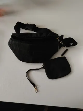 Riñonera negra con un pequeño monedero a juego. No la he usado ni una sola vez. Está nueva