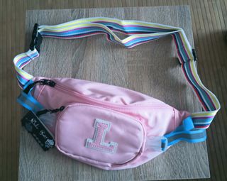 Riñonera, con detalle de letra "L". Sin estrenar. Conserva la etiqueta. En tono rosa, con correa multicolor.