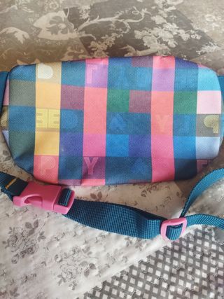 Riñonera con un diseño multicolor. Tres bolsillos. Nueva sin estrenar, con etiqueta. - Estampado étnico con rayas verticales. - Cierre de cremallera. - Correa ajustable con hebilla.