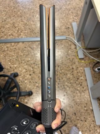 Plancha Dyson en tonos dorado y gris. - Diseño elegante y moderno. - Acabado metálico. La vendo porque no la utilizo. Esta nueva y tiene el ticket de compra.