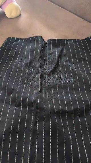Conjunto de dos piezas que incluye una falda y una chaqueta. - Chaqueta corta con cuello - Falda de corte recto - Diseño de rayas verticales