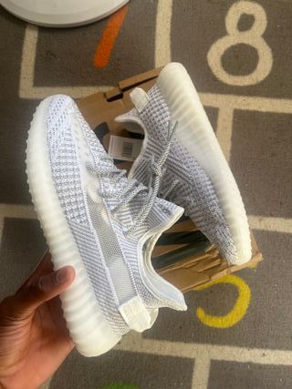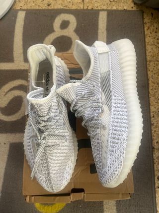 Zapatillas Adidas Yeezy Boost 350 V2 en tonos grises y blancos. - Diseño moderno y cómodo. - Tejido transpirable. - Suela de goma. - Cordones reflectantes.