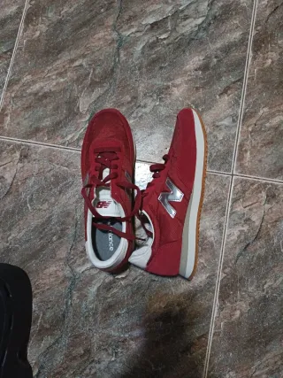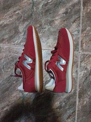 Zapatillas deportivas de la marca New Balance. - Diseño en color rojo con detalles plateados. - Cierre con cordones. - Suela de goma.