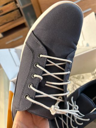 Zapatos Timberland de estilo casual. - Color azul marino con detalles blancos. - Cierre de cordones.